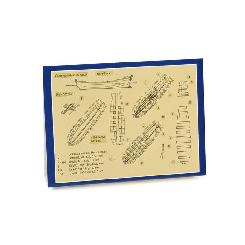 Botes salvavidas de madera-metal 90mm, 1 und. Marca Amati. Ref: 4302/09, 430209.