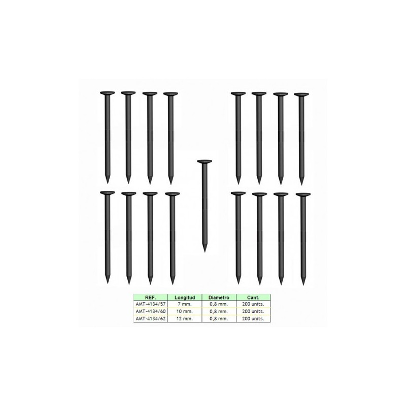 Clavos de hierro bruñido 0.8 x 12 mm ( 200 uds.). Marca Amati. Ref: 413462, 4134/62.