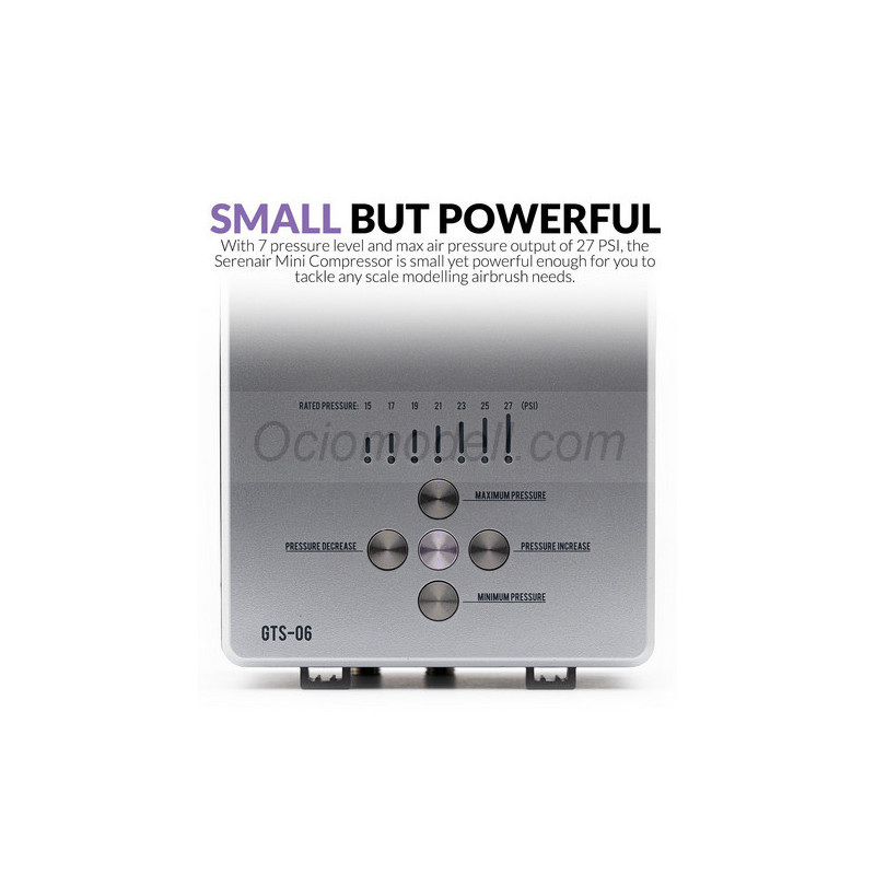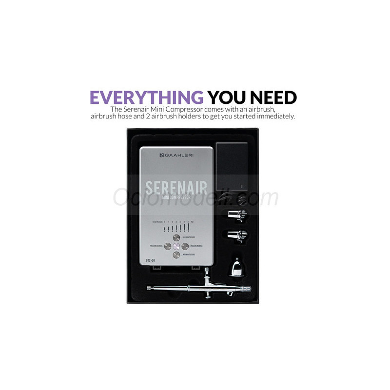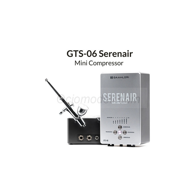 - El Gaahleri Ambition Series GTS-06 Serenair Mini Compressor está diseñado para los entusiastas del aerógrafo que necesitan potencia y comodidad en un paquete compacto. Ya sea que esté abordando el modelado a escala detallada o proyectos más grandes, el mini compresor Serenair ofrece todo lo necesario para la precisión y el control.