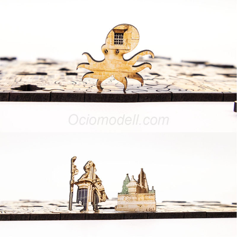 Rompecabezas de madera clásicos coloridos con formas de elementos inusuales, que hacen que el proceso de ensamblaje sea aún más emocionante. El diseño único de cada rompecabezas está hecho en colaboración con Andreas Preis, artista, diseñador e ilustrador alemán con una técnica de dibujo impresionante.