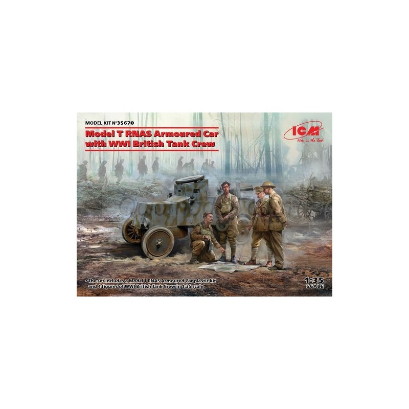 T RNAS Armoured Car with WWI British Tank y 4 Crew. Escala 1:35. Marca ICM. Ref: 35670.