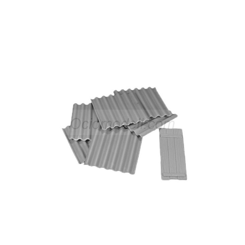 Tejado de chapa ondulada y puerta. Escala 1:35. Marca Macone. Ref: MAC35120.
