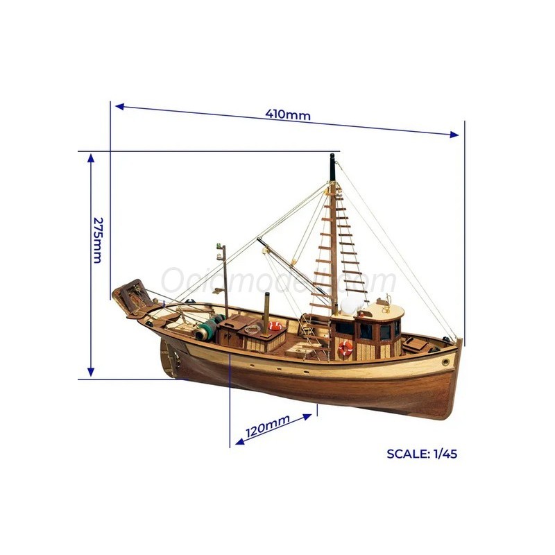 Verá cómo paso a paso logrará reproducir una maqueta con todos los detalles navales del barco y fiel al original. Le invitamos a dejarse llevar y crear espacios de ocio creativo donde poder disfrutar de esta maravillosa maqueta de este precioso pesquero.