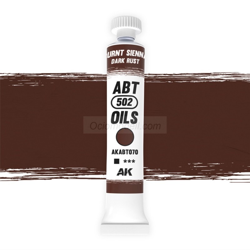 Oleo oxido oscuro/ Sienna quemado, Burnt Sienna/Dark Rust. Perfecto para crear efectos de óxido como los que se encuentran en distintos tipos de metal, tubos de escape, maquinaria, etcMarca Abteilung. Ref: AKABT070.