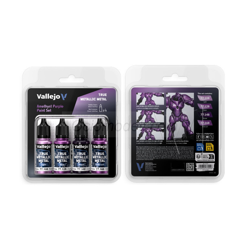 TRUE METALLIC METAL, AMETHYST PURPLE METAL PAINT SET, 4 Colores. Marca Vallejo. Ref: 77255, 77.255.